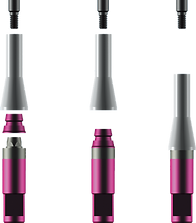 アングルタイプのバーアバットメントは、PEEK製のプレマウントハンドルが装着された状態で包装されており、それぞれの直径に合わせてカラーコード化されています。